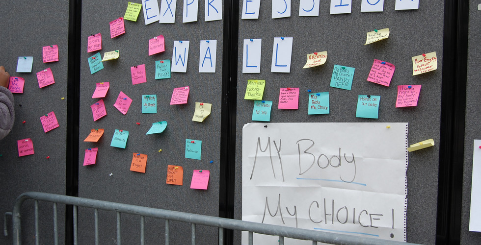Students continued to protest well into the afternoon, chanting “My body, my choice” and “F*** them kids!” A barricade on the far side of the podium was turned into an expression wall, complete with dozens of pro-choice post-it notes.